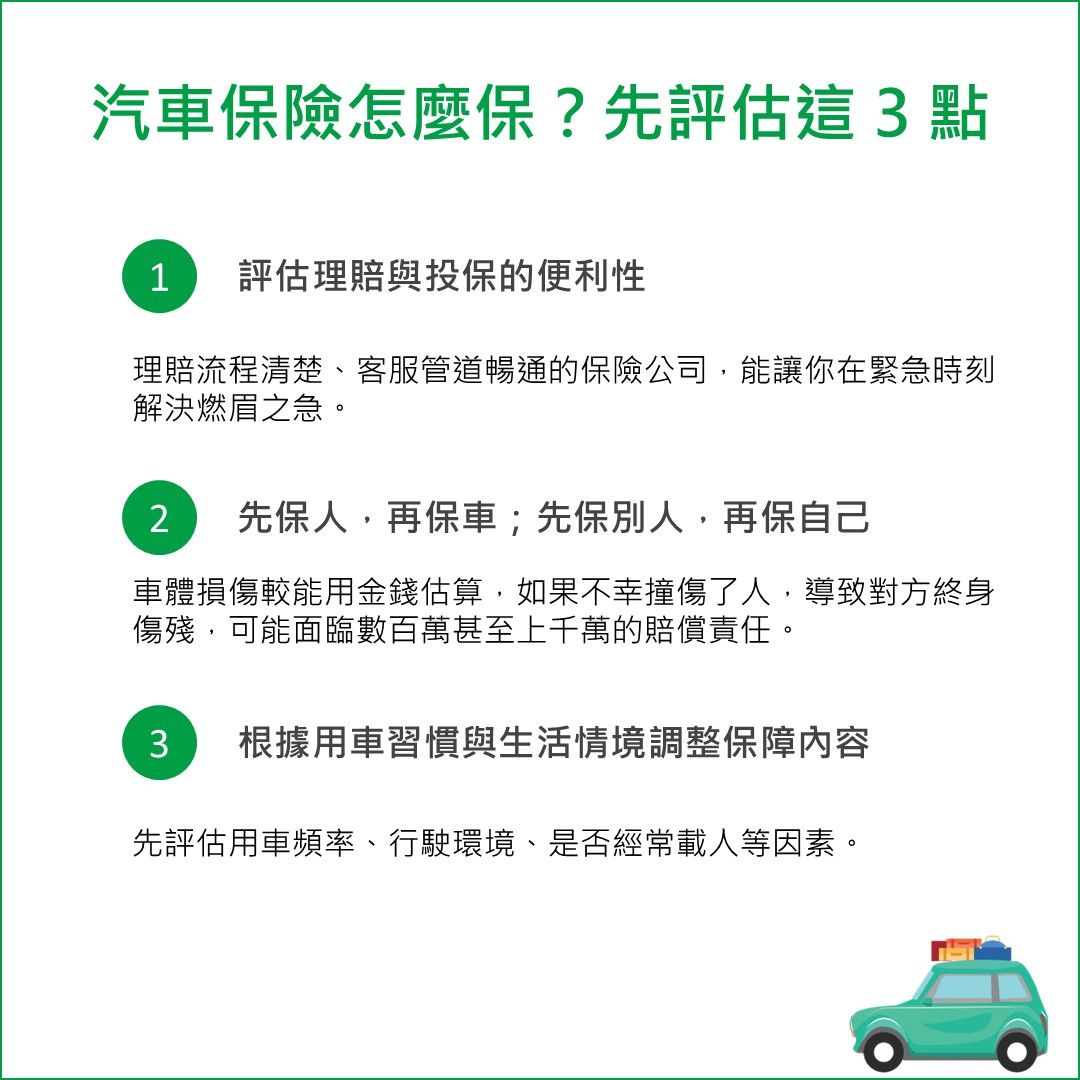 投保汽車保險,與其只是「看價格比便宜」,更建議依循以下三個原則,找到真正適合自己的保障組合。