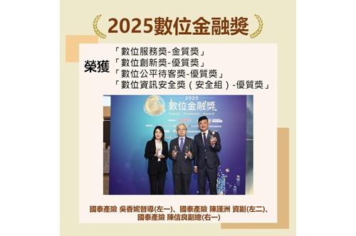 國泰人壽橫掃數位金融獎「數位創新獎」、「數位服務獎」、「數位普惠獎」及「數位資訊安全獎(安全組)」四項金質獎。累積超過330萬用戶的國泰人壽App,以「創新家庭保單管理、全流程線上服務、集團級資安聯防機制」,回應保戶對數位保險「創新、便利、安全」的期待;並透過個人化保障建議與精準行銷模型,有效提升客戶參與線上服務與轉換效率,至2025年5月止,透過線上管道申辨保單借款件數佔比已達52%。目前該App已穩居全台使用人數最多的保險類App,每月活躍用戶率高達65萬人,展現強大用戶黏著力與市場領先地位。