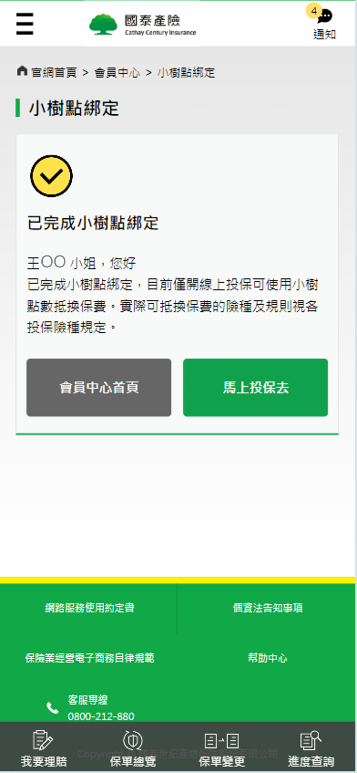 國泰產險會員X小樹點綁定