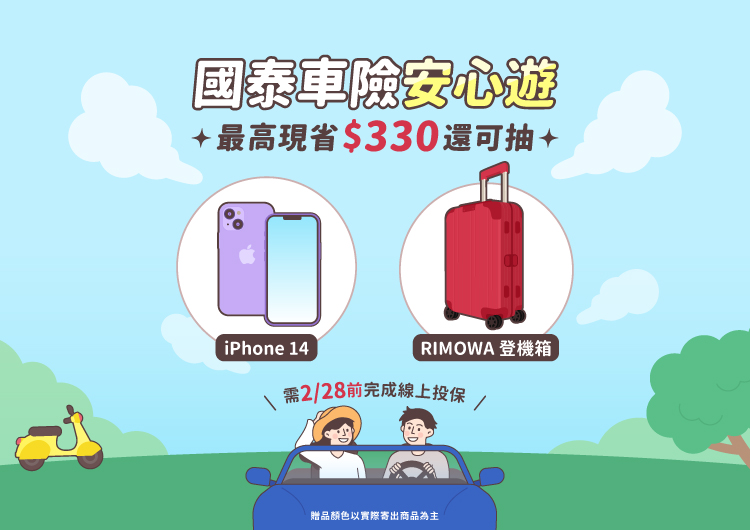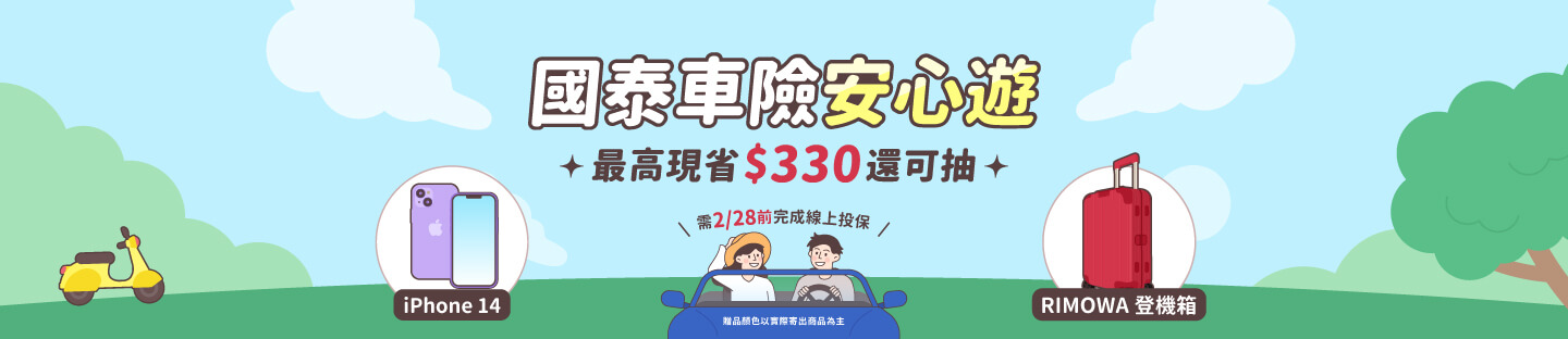 4. 線上投保強制險,最高現折$330,同時加保任意險還可抽iPhone 14 (2023/1/1-6/30)。