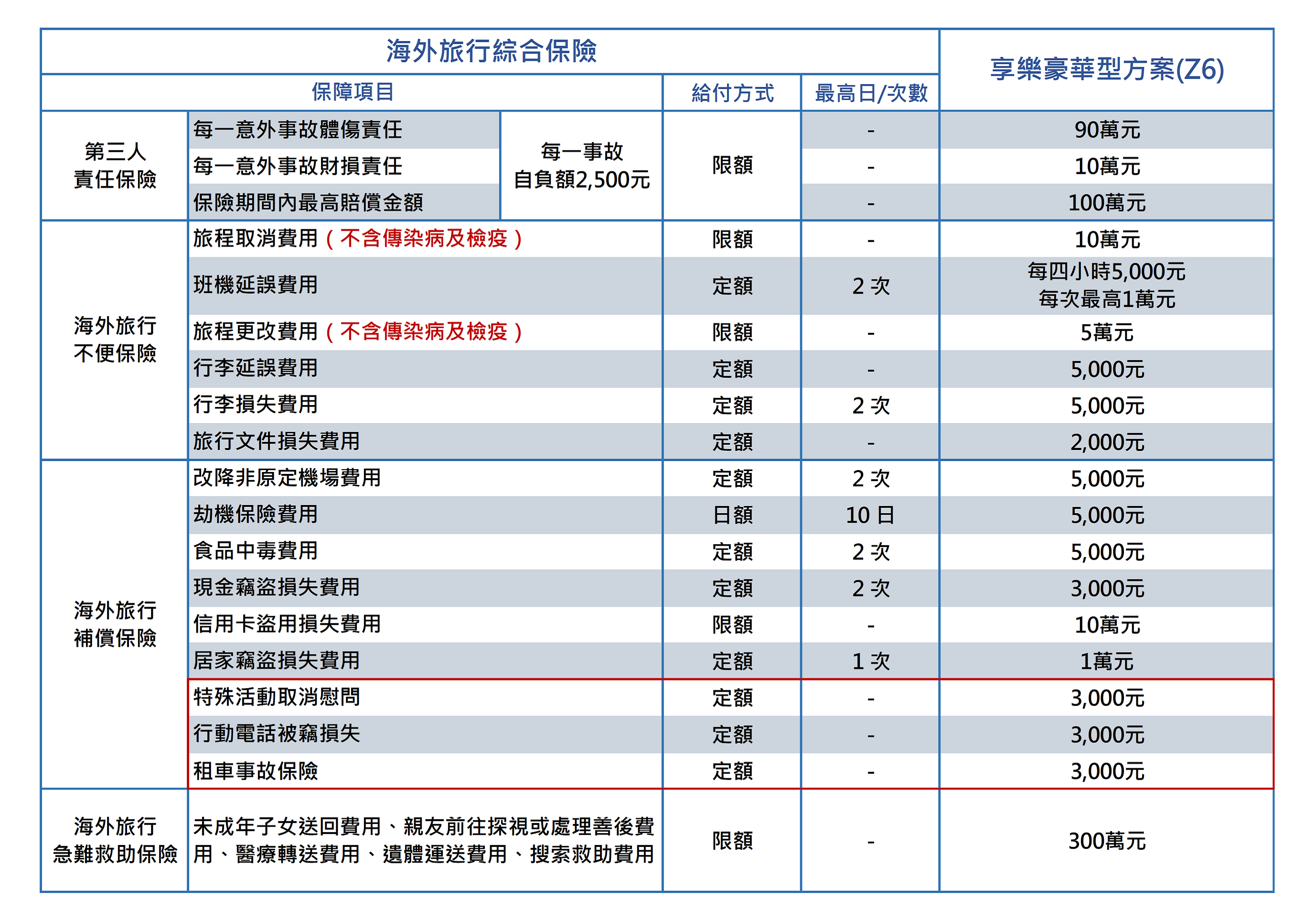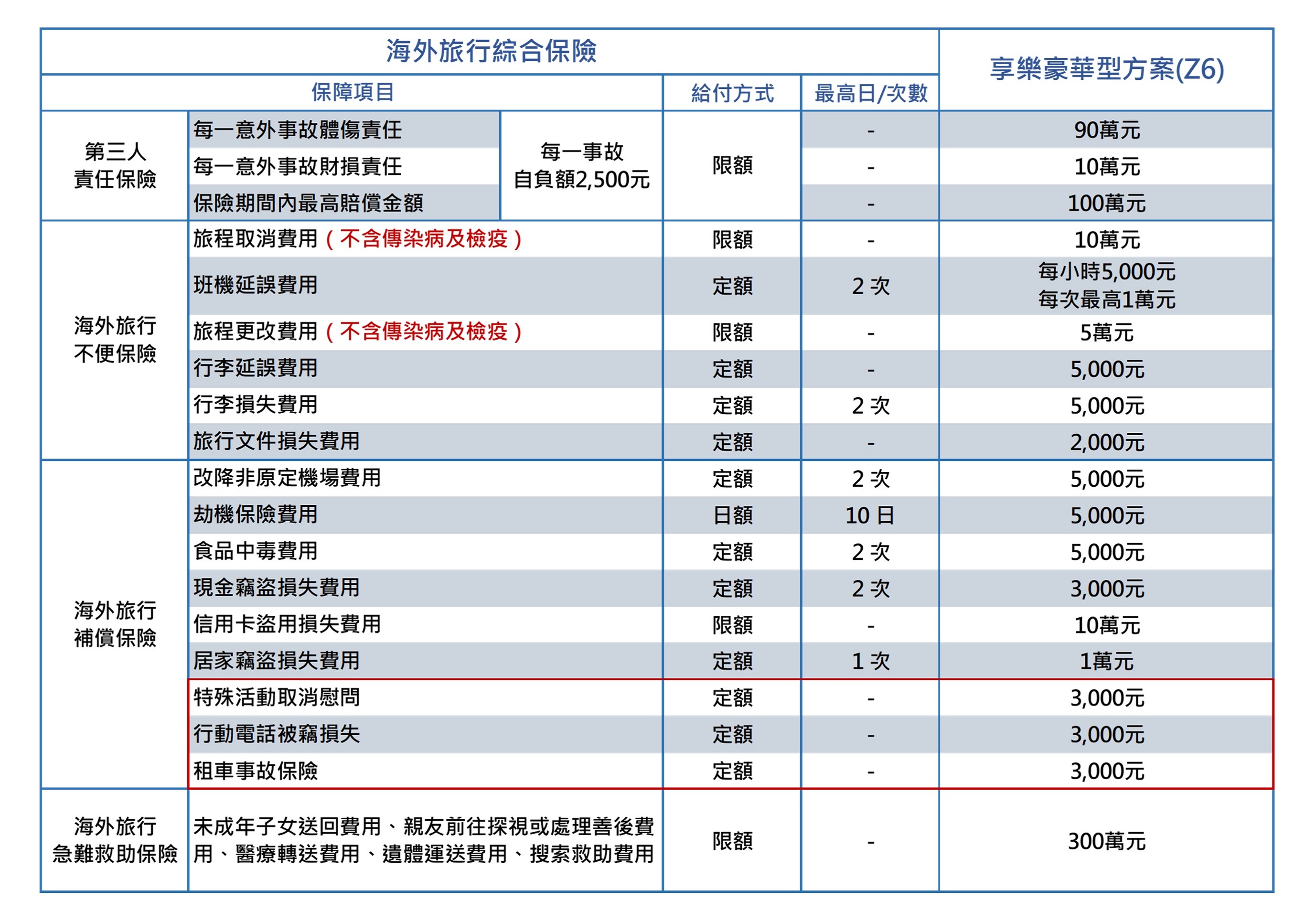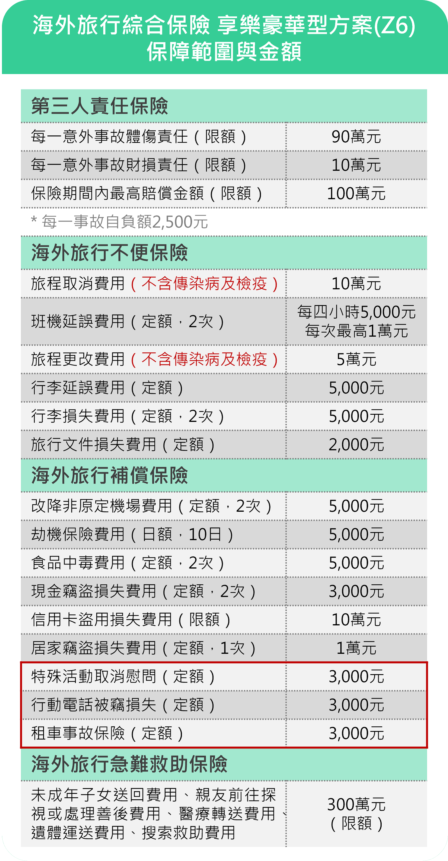 *保費金額以投保試算頁面為準,保費將依保額、天數、人數而有所不同。詳細承保內容請參考保單條款。