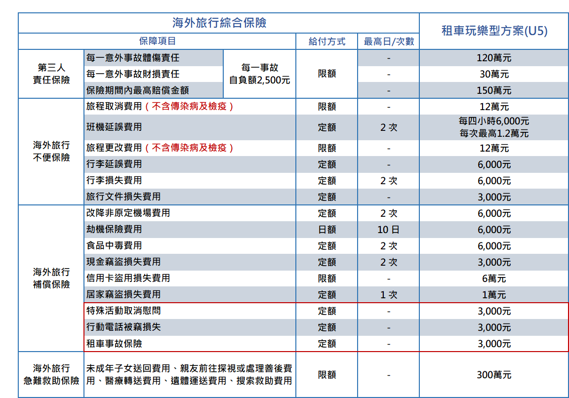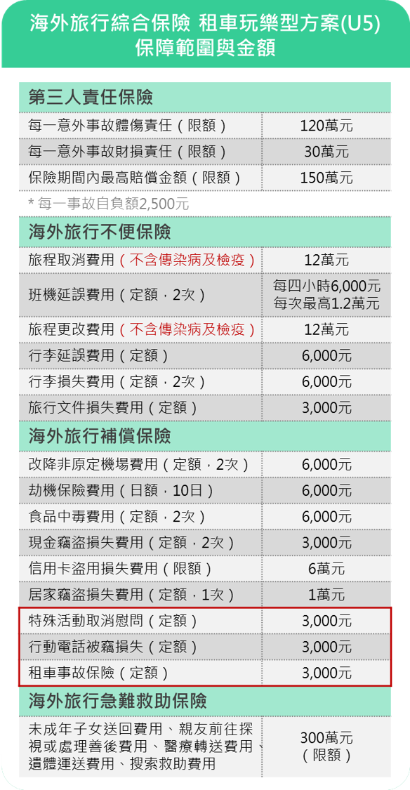 定額理賠3,000元,租車交通意外有保障 駕駛或乘坐租用汽車皆有保障