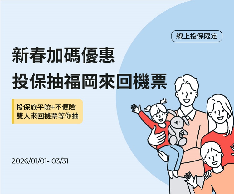 新春加碼優惠!投保就抽【福岡雙人來回機票】